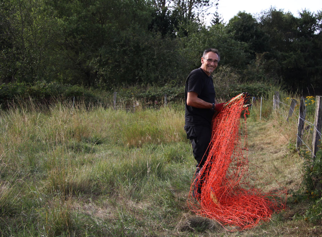 In Windeseile haben ihre dienstbaren Geister die Pfosten gesetzt, morgen wird der Weidezaun angeschlagen, dann gibt es kein Entrinnen mehr für die Schafe.