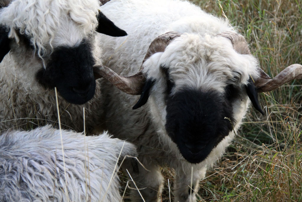 Auf der Suche nach einem respektablen Schafsdamenbeglücker fanden wir zufällig diesen wunderschönen Walliser Schwarz-nasenschafbock.